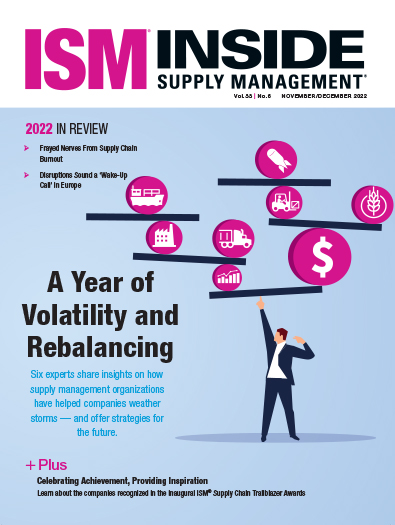 Inside Supply Management® is a leading publication for those within the procurement/sourcing and supply chain profession. Our magazine covers essential news, innovative trends, ISM® PMI® Reports coverage, research analysis, leadership profiles, career strategies and much more.